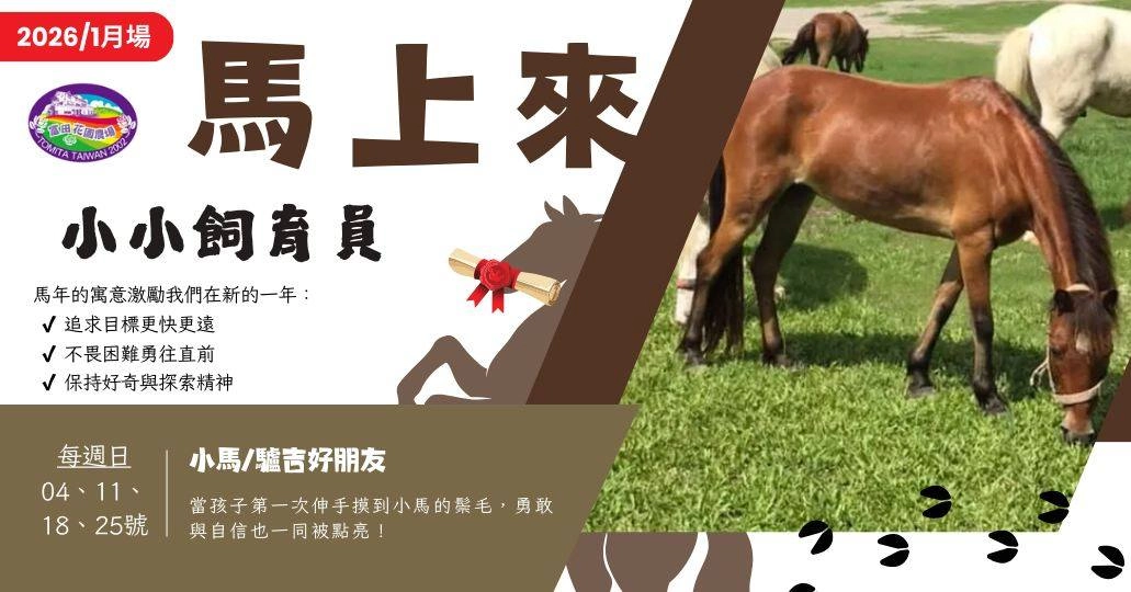 富田香草休閒農場每年會舉辦期間限定的「小小飼育員大冒險」親子活動,讓孩子在導覽員或場長帶領下,進入農場動物世界親手體驗與動物互動的過程。